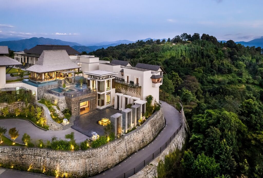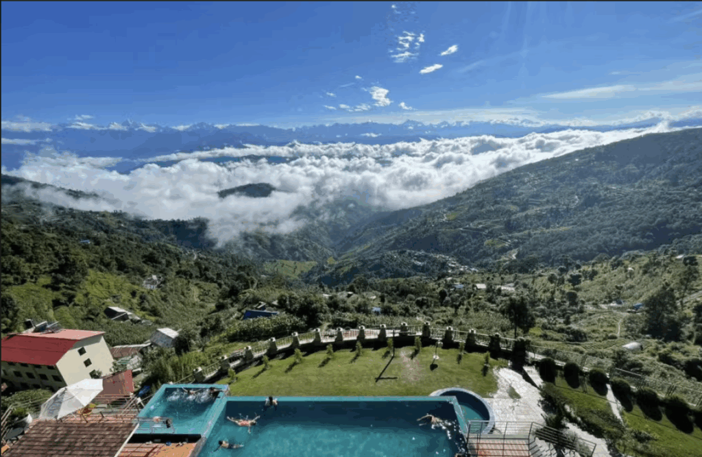 A modern, high-end resort with infinity pools, private terraces and clean Himalayan design. Because it sits in a forested ridge close to Kathmandu and Bhaktapur, it’s excellent for guests who want seclusion but need quick city access; the property is experienced with full-service weddings and luxury hospitality.